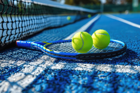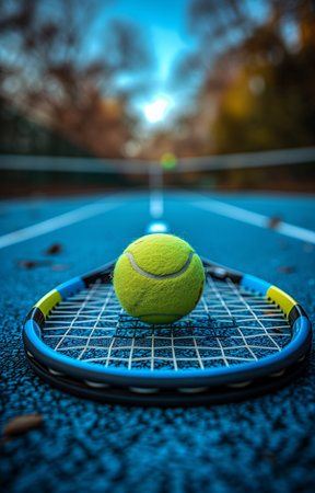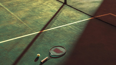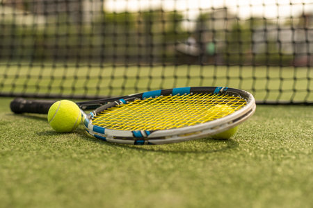 Dynamic Tennis Racket and Sport Equipment on a Court with Net During Exciting Sporting Events