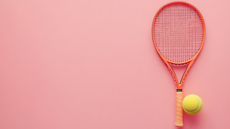 This vibrant image features a tennis racket and ball against a pink background, encapsulating active lifestyle and recreation. Perfect for sports enthusiasts and fitness lovers.