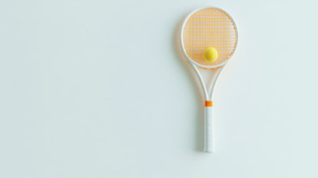 A single tennis racket with yellow ball on a clean white background, minimalist sports gear concept