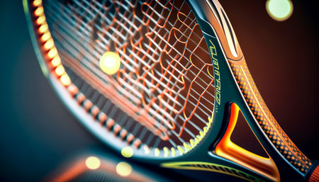 Tennis racket close-up on a blurred background, generative AI.