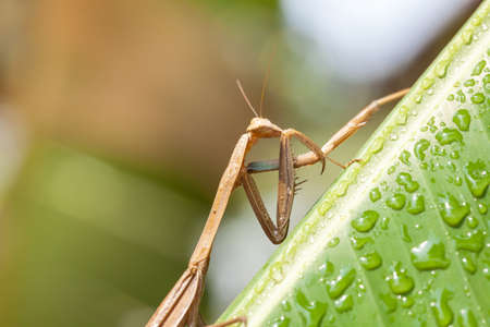 Praying Mantis is a predator for other small insects, it hides among leaves and flowers to disguise itself waiting for prey, even though this animal is quite tame and easy to approach.