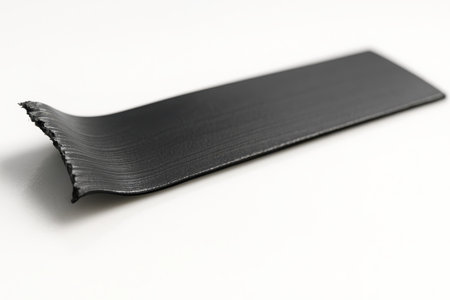 Insulating tape macro closeup short strip with torn edge and surface texture on white background for electrical repair and hardware themes