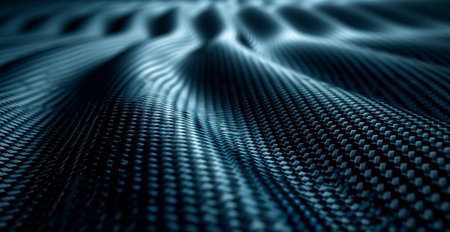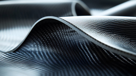 Close-up of smooth, sleek carbon fiber fabric exhibiting intricate patterns and textures, ideal for modern design aesthetics.