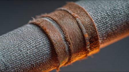 Close-up of fabric wrapped around a cylinder showing intricate textile details and lighting