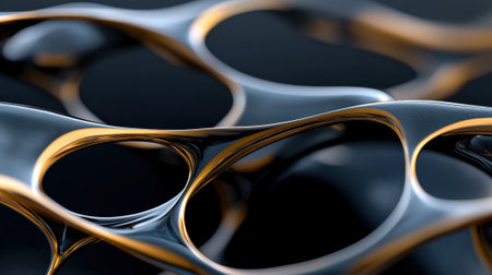 Abstract Metallic Wireframe Mesh in Chrome and Black A futuristic, tech-inspired composition with interwoven metallic wireframe patterns in reflective chrome