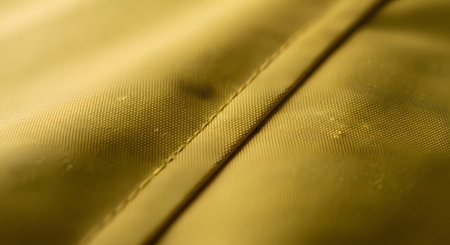 A macro shot highlights the texture of a durable yellow fabric with a prominent stitched seam. The lighting emphasizes the weave of the material, suitable for backgrounds related to textiles, fashion, or outdoor gear.
