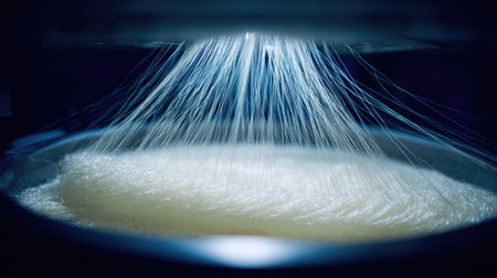 This image captures the mesmerizing process of spinning delicate sugar threads in a confectionery workshop, showcasing the artistry and craft involved.
