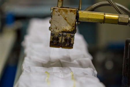 Production of independent springs for mattresses. Independent spring blocks packed in spunbond. Bonding layers of springs. Furniture manufacture. Industrial and business concept.