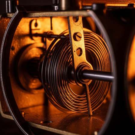 A mechanism gear starts its movement after being repaired, illustrating the concept of mechanical recovery and skilled craftsmanship.