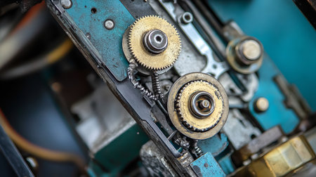 Explore the intricate details of mechanical gears and parts in this close-up shot capturing the precision of engineering and craftsmanship.