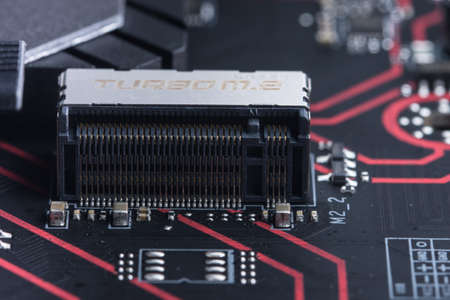 Computer motherboard. Closeup electronic components. Studio shot.