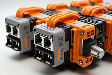 Wago Terminal Blocks on white background. A high quality image making by generative ai.