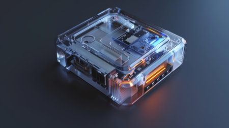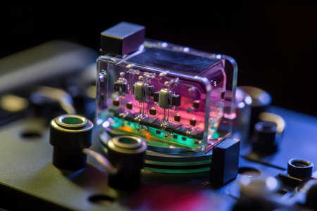 A close-up macro shot of an advanced bio-sensor device for the human body. Generative Ai