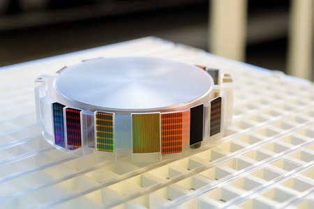 Generative AI Macro of silicon semiconductor wafer.