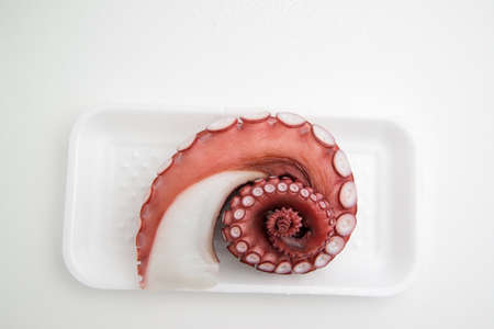 Octopus tentacles on a white background. Close-up. Macro