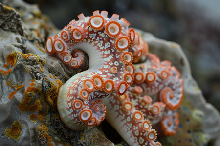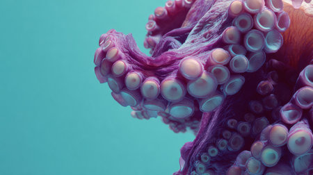 Vibrant detail of an octopus tentacle showcases its unique textures and colors, set against a soothing blue gradient background, emphasizing natural beauty.