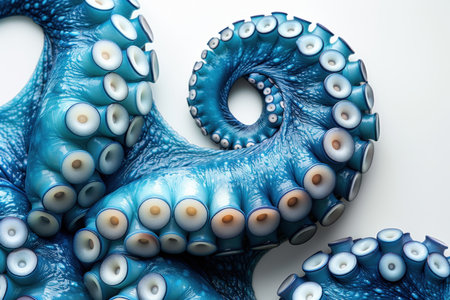 A dramatic close-up of vibrant blue octopus tentacles, showcasing intricate textures and bold marine aesthetics.