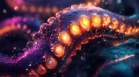 Octopus tentacles close-up. Microscopic view. 3D illustration