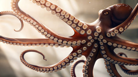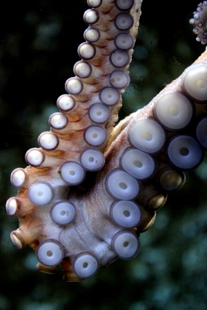 Detailed view of an octopus's tentacles and suckers. The lighting accentuates texture and form.