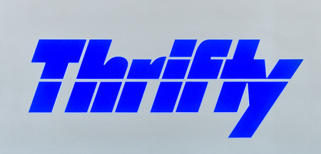 MINNEAPOLIS, MN/USA - MAY 22, 2016: Thrifty Car Rental sign and logo. Dollar Thrifty Automotive Group is a holding company for Thrifty Car Rental and Dollar Rent A Car.
