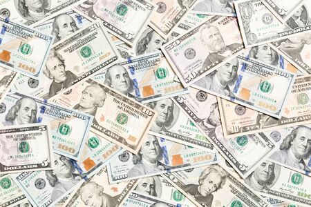 Top view of various dollar cash background. Different banknotes concept. Wealth and rich concept.