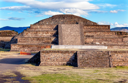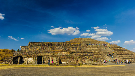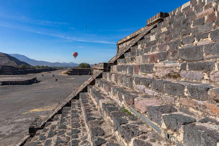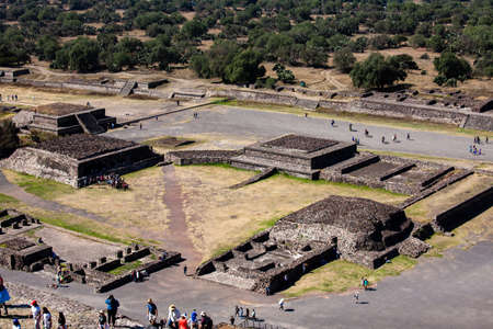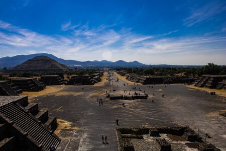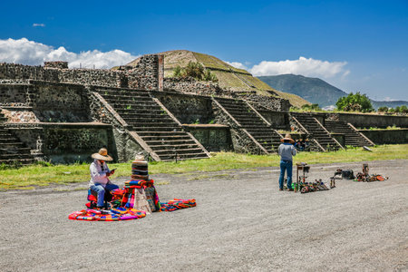 Teotihuacan, Mexico City, Mexico, South America - Janunary 2018 [The Great Pyramid of Sun and Moon, views on ancient city ruins of Teotihuacan pyramids valey, The Road of Dead]