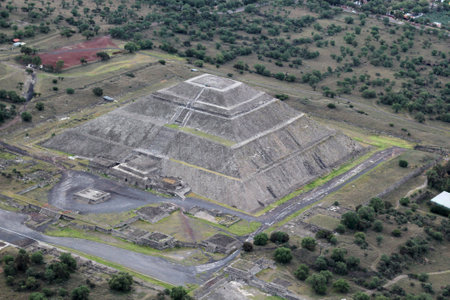 Aerial view of pyramids of Teotihuacan, Mexico