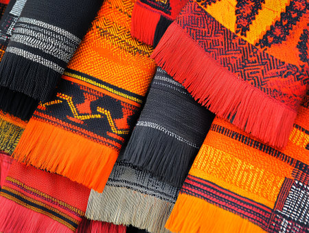 Cinematic texture of intricate tribal patterns with rich colors and designs