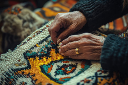 This close-up image showcases a beautifully crafted vintage textile with intricate patterns and rich colors, perfect for artistic and decorative use.