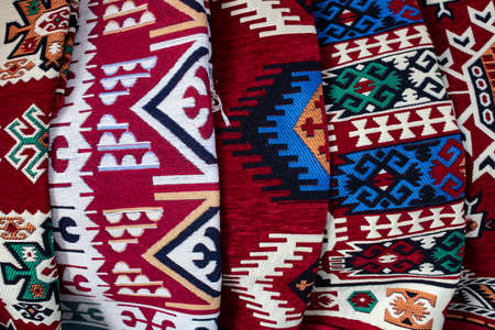 a beautiful interesting background with handmade Turkish rugs in close-up