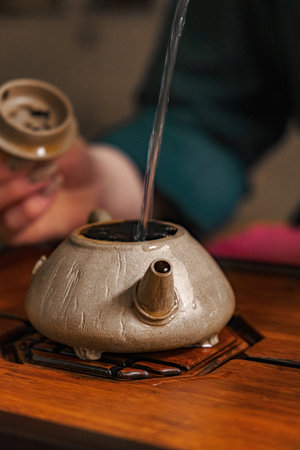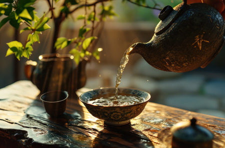 Artisan Ceramics Teapot Pouring Tea in a Beautiful and Traditional Cultural Setting