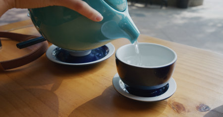 Experience the elegance and artistry of tea pouring in a beautifully serene setting