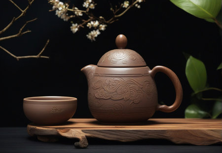 Enjoy a serene tea ceremony experience featuring a beautiful clay teapot and cup