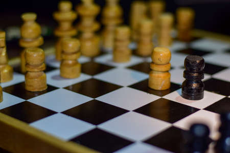 Chess game. White and black pieces are fighting for victory. The Central figure is in focus. The concept of teamwork.
