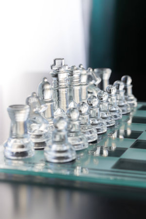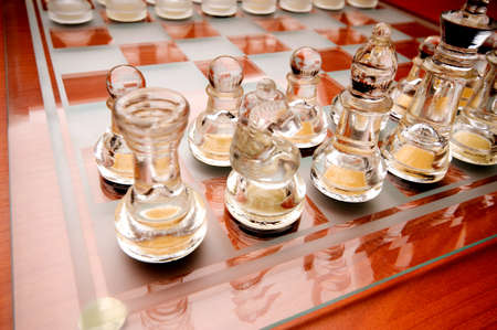Glass Chess Pieces on a Frosted Glass Chess Board