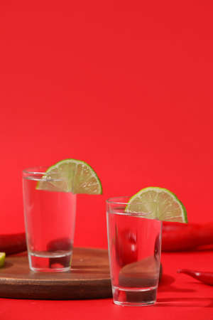 Tequila shot with lime . Selective focus