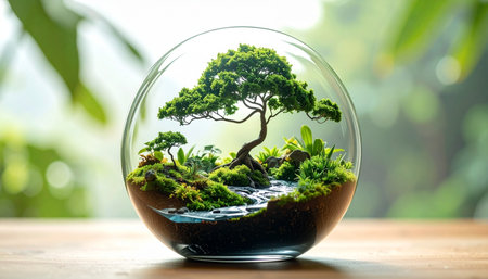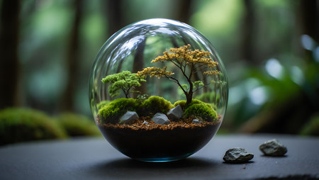 A perfectly balanced miniature world thrives inside a glass sphere.