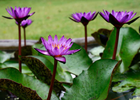 Blue lotus flowers or waterlily in the pond giving a feeling calm. It is a flower native to asia.
