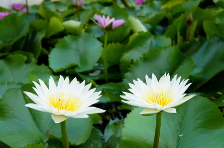 Beautiful waterlily or lotus flower on the farm ,Thailand.