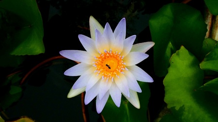 Top view of violet or purple lotus and insect in flower with green leaves background - Beauty in Nature, Plant, Animal and Natural wallpaper