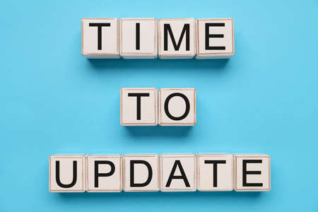Text TIME TO UPDATE made of cubes on light blue background