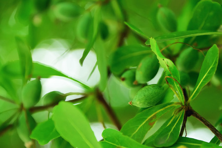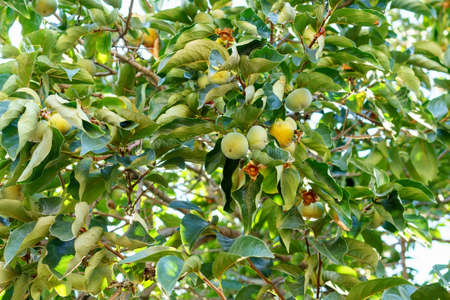 Green Persimmon trees persimmon ripening on the branches of the tree. the cultivation of fruit