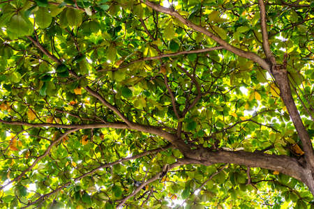 Under looking view on tree leaves, Under view on the green leaves background, green leaves in the natural background, nature on sunlight.