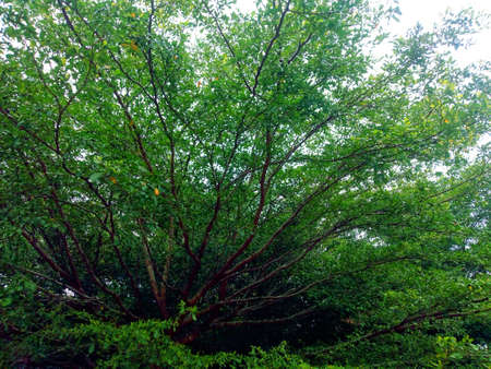 Beautiful tree branch leaf natural plant, Tree bokeh bright environment background, Growth leaf tree nature fresh green bush, Forest background