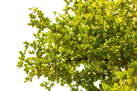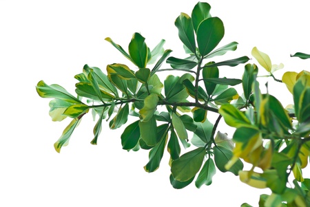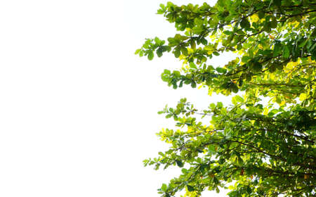 Tropical tree with leaves branches on white isolated background for green foliage backdrop