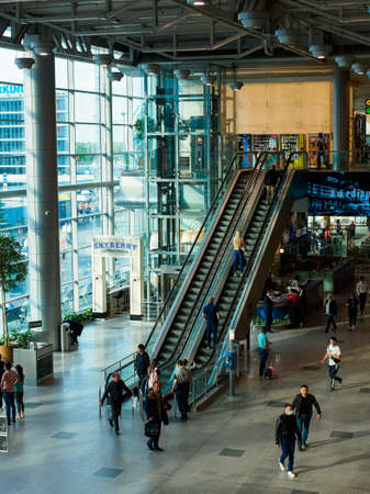 Moscow, Russia - May 26, 2021: escalator inside Domodedovo airport