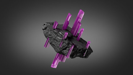 3d rendering, black rock with pink crystals, coal, magical nugget esoteric object isolated on black background