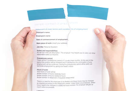 Female hands break employment contract over white