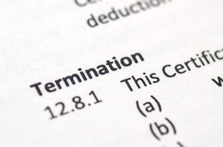 A close-up of a legal document with the word Termination in sharp focus, symbolizing the definitive end of an agreement and its consequences.