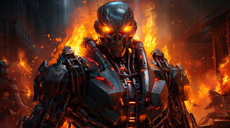 The epic fiery robot apocalypse: a science fiction dystopian future disaster with explosive flames and mechanical menace